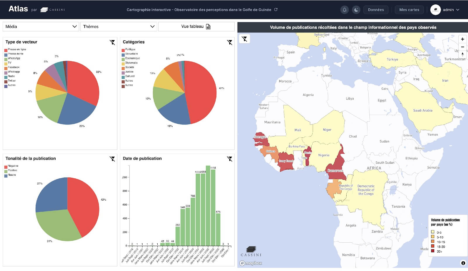 Les outils développés par CASSINI permettent ensuite un traitement adapté (analyse lexicométrique, cartographie sémantique) afin d'en extraire les éléments les plus pertinents. Les flux sont organisés et archivés pour permettre un suivi dans le temps. Chaque information significative est qualifiée par les analystes, qui évaluent sa source, son inscription territoriale et son potentiel d'impact.